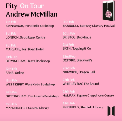 Award-winning poet and professor of poetry at Man Met, Andrew McMillan’s much-anticipated debut novel Pity is upon us, and he’ll be on tour around the UK throughout February, with the Manchester launch hosted by Blackwell’s Bookshop at Central Library.