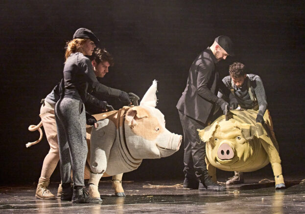 Bringing spectacle and lots of imagination, the timeless story is enacted through ingenious puppetry and the animals’ words are spoken by a group of actors. Bringing the famous farmyard to life and designed with exceptional detail, the show features over 30 life-sized animal puppets – from cart-horses to tiny birds – all controlled by a talented gang of just 14 operators.