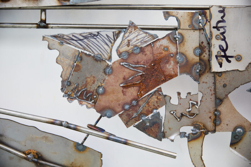 Outside the Chapel, you’ll find Hole in the Ground Radiates Trans Joy – a horizontal line of plaster plaques cast from earth with soil and pebbles inside. Each soil sample was collected by a trans person from a place connected with a happy memory. These works reflect Bowler’s close connection to the land, citing artists Rose English and Ana Mendieta as his inspirations.