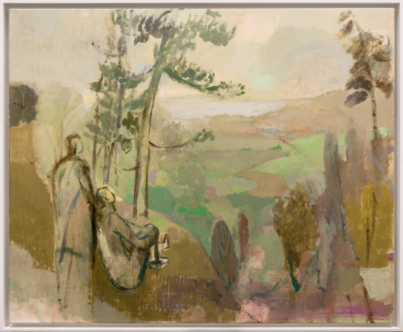 Davina Jackson’s Just Like It Was (2025) is a work that could’ve been made this week or 100 years ago. The artist depicts a landscape with two contemplative figures in loose brushstrokes and muted colours which, like many of her other works, has a timeless quality. Memory, longing, and introspection are easily discernible themes in the piece.