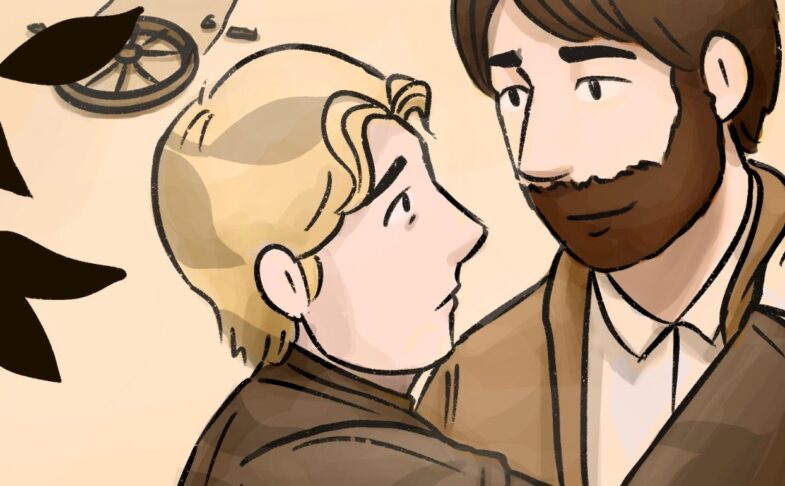 The comics in the exhibition include Witch & Warrior, a Sapphic medieval fantasy and the queer Victorian romance The Invalid’s Valet, featuring trans knights and disabled aristocrats. Visitors will have the chance to closely examine Gray’s artistic process, with development sketches and time-lapses illuminating the process of creating and refining a character. Alongside these, you will also find a number of comics and graphics novels displayed in the gallery, including references to film noir, 80s comic art and other queer creators that have inspired Julian’s work.