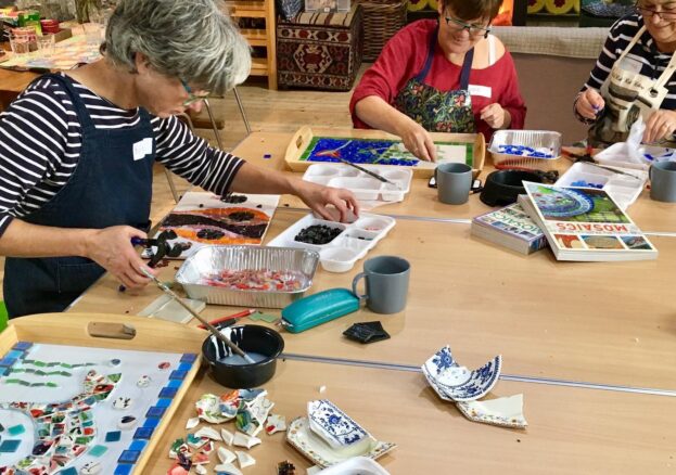 ‘Mosaic in a day’ is a popular choice for some crafty relaxation, with no previous experience needed. Create a colourful plaque to hang outside or to decorate a wall indoors, or a trivet for those hot pots on your table. Alternatively, brighten up coffee breaks with your own mosaic tray; these cost £5 or you can bring/recycle your own.