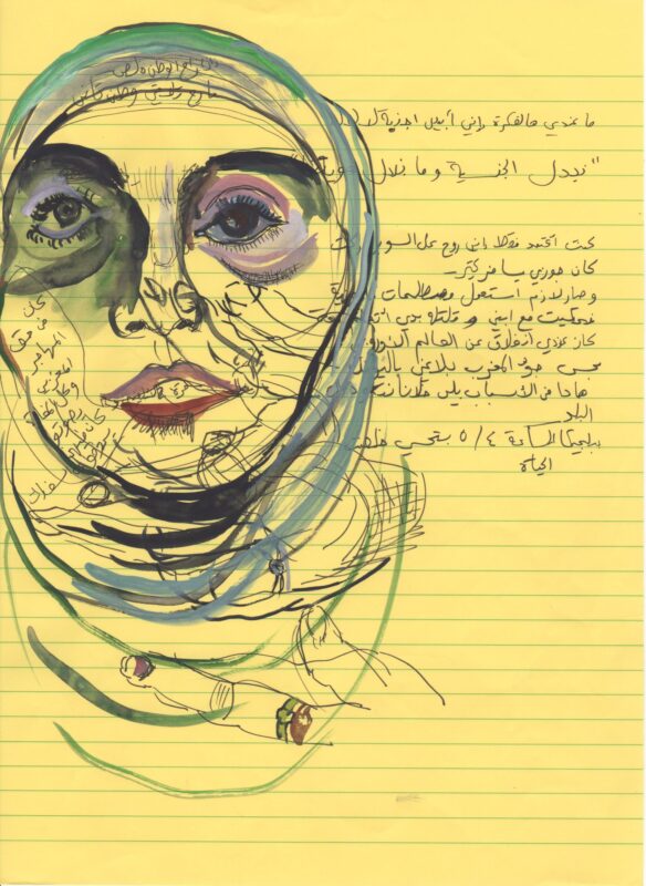 The Lebanese artist’s portraits drawn on paper, or “time documents” created as part of the project I strongly believe in our right to be frivolous will also be included in the exhibition. Began at the start of the Syrian war, the drawings feature sketched portraits with text. Many these are drawn on yellow legal paper, serving as reminders of the inescapable bureaucracy in obtaining a citizenship. They stemmed from conversations Al Solh had with Syrian refugees, as well as other people from the Middle East displaced to Lebanon, Europe, the United States, and other parts of the world.
