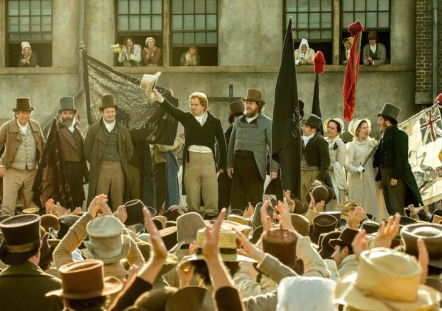 The film spends a lot of its runtime carefully detailing the climate that led to the disastrous events at the St Peter’s Field demonstration, showing the contrast of experience between the land owning and political classes and the working class in the north, who bore the brunt of the economic fallout from the Napoleonic wars. The Corn Laws meant heavy taxation on grain which hit the poorest hardest and the changes brought about during the Industrial Revolution brought further uncertainty to a workforce already on the breadline. Meanwhile, London appointed magistrates administered the harshest punishments for the smallest crimes — but a swell of dissatisfaction slowly became a political movement for change.