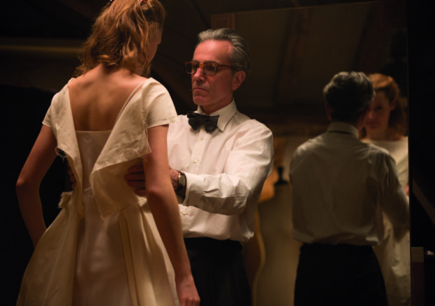 With Phantom Thread, Paul Thomas Anderson swaps the sprawling, paranoiac view of ’70s Los Angeles counterculture explored in his 2014 film Inherent Vice for the restrained elegance of the fashion world circa ’50s London. The film stars Daniel Day-Lewis (in what is apparently his swansong performance) as Reynolds Jeremiah Woodcock, a fussy, quietly mannered English dressmaker with a client list that includes rich high society and Belgian royalty. He lives and works in a large central-London house, with his business partner and sister Cyril (Lesley Manville), who manages and facilitates his genius. Woodcock is a confirmed bachelor until he meets Vicky Krieps’ Alma, a European immigrant (the film does not specify her origin but implies that she might be a Holocaust refugee) who serves him a comically large breakfast in a rural café.