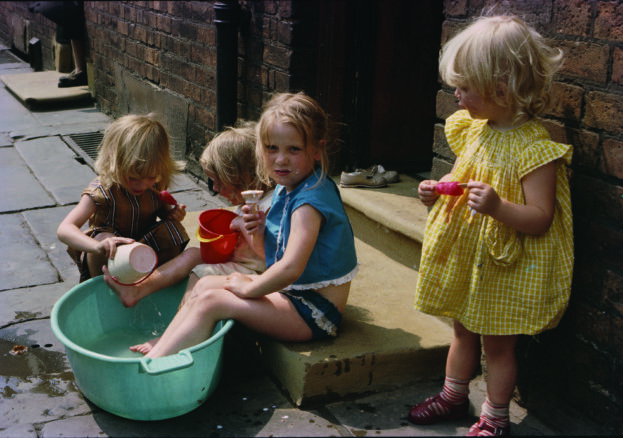 Women and Children; and Loitering Men is an exhibition of Baker’s work at Manchester Art Gallery (previously at The Photographers’ Gallery in London): organised in narrative and thematic strands, the photographs are set to a specially commissioned soundscore of noises from the streets alongside Baker’s voice from a 1922 interview, arranged by Derek Nisbet. The exhibition also includes a series of colour photographs that have never before been exhibited, having remained unprinted in Baker’s archive since they were taken in 1965; displayed in a separate gallery, the images depict children playing on a rubble heap, an elderly couple picking their way across a post-clearance landscape. They evidence Baker’s experimentation with colour married with her ambition to document “the mundane, even trivial aspects of life not being recorded by anyone else” – to stunning effect.