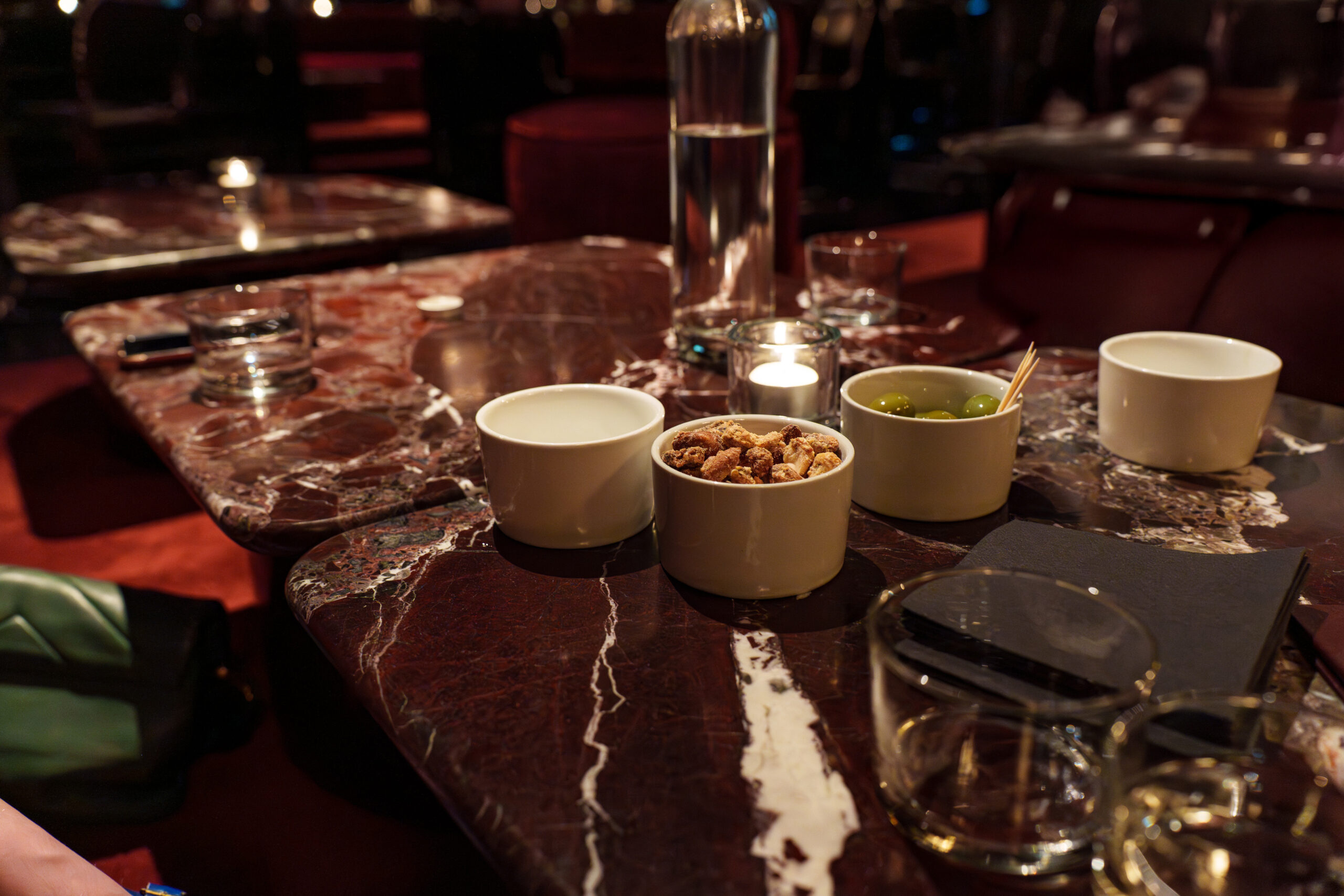 Naturally, there are the classic bar snacks, designed to complement the drinks rather than overpower. There aren’t many to choose from – simply plump olives and some crunchy, salty snack mix – but as with everything else at Bar Lina, they’re tasteful and they work well.
