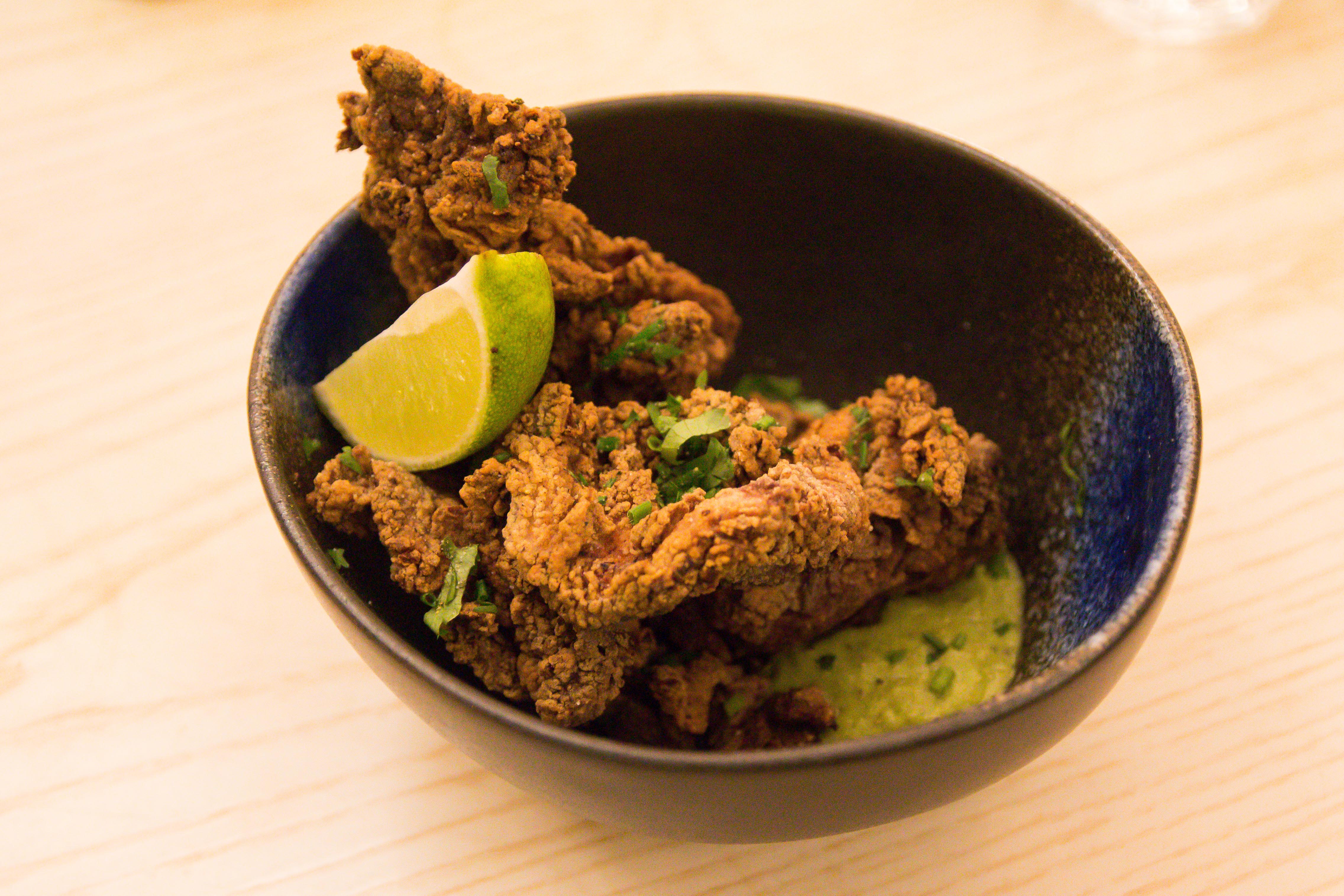 The KFC, aka Korean fried chicken, is a dazzling way to start things off. Soft chicken fillets, fried, fried and fried again, boasting a thick crackly coating, and resting on a fiery green chilli mayonnaise that gives off a deep satisfying heat rather than a cheap, painful burn. Korean fried chicken has become curiously modish of late, thanks to the crunch replacing the greasiness of typical fried chicken. And while some might say it’s merely a fancy rebrand to appease those too highfalutin to step food in a high street takeaway, it certainly has its place.