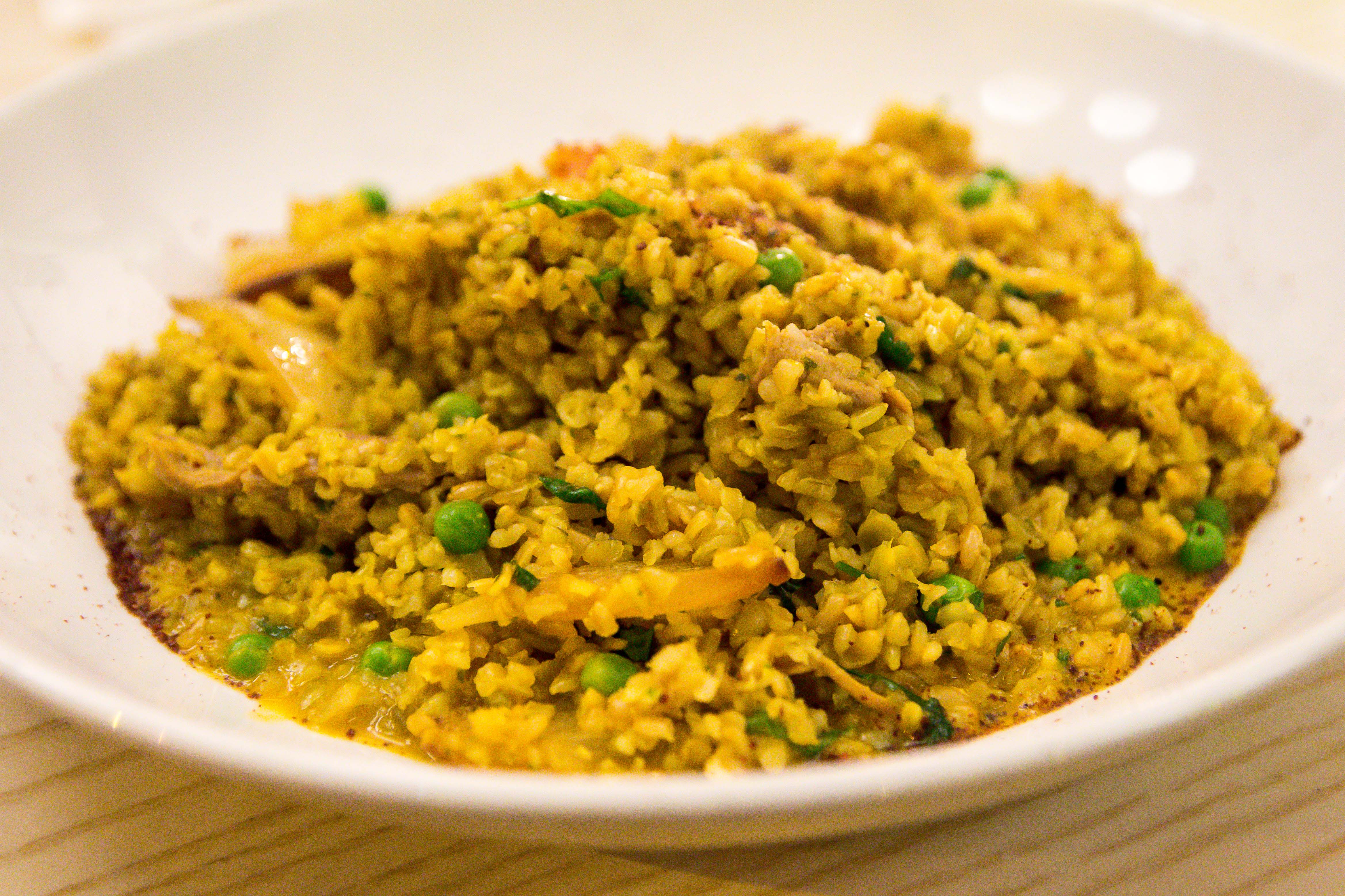 The lamb dish comes as a slight surprise. Billed as slow-cooked lamb, with blackened onions, pine nuts, harrisa and freekah (a North African grain, made from green durum wheat), you’d expect a thick cut of meat to tear into, but this had been done already – shredded and mixed into the bowl. It’s a fine dish, healthy and energising, but lacks the slap-across-the-face bolshy flavours of the other courses.