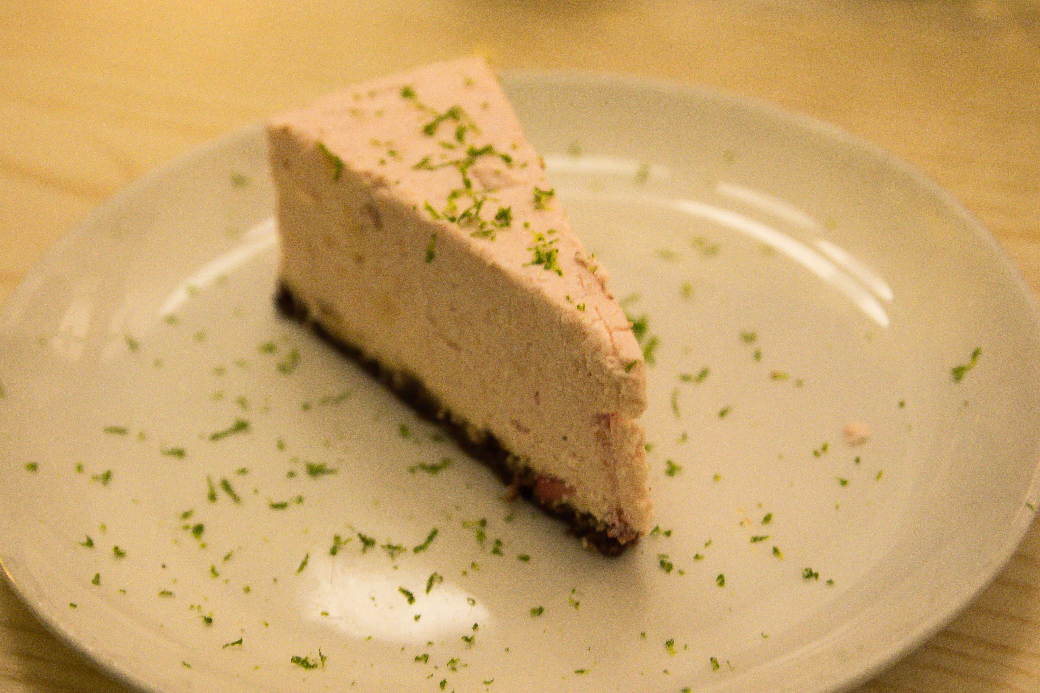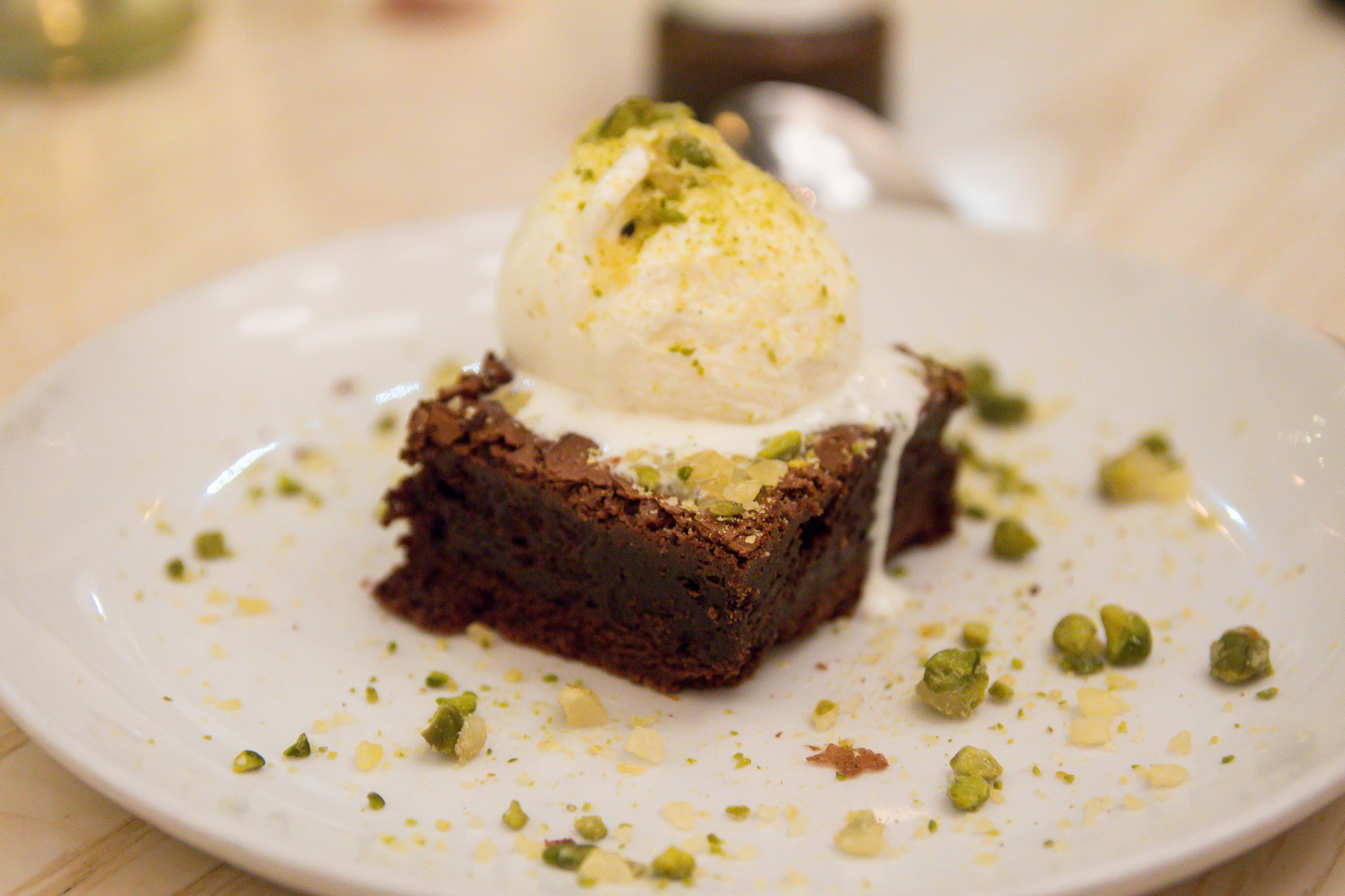 The chocolate brownie is as good as brownies get. Soft and crumbly, with a gloriously creamy ice cream, speckled with smashed-up pistachio nuts. The vegan plum and tofu cheesecake, however, won’t cut it for those of us with dairy-reared palates. There’s a disappointing lack of sweetness and a gritty texture that serves to disorientate rather than punctuate this largely excellent meal.