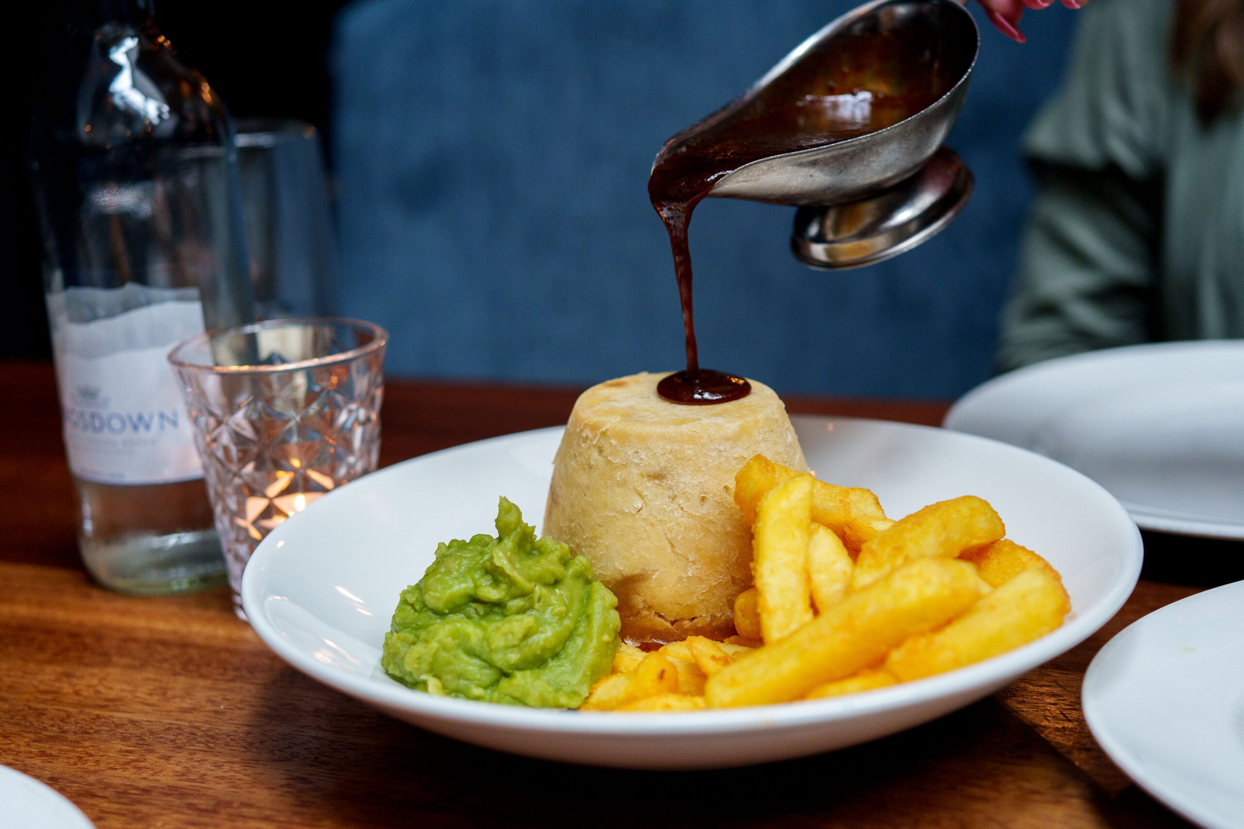 One notable example is suet pudding, cooked in the traditional way and stuffed – and we do mean stuffed – with beef, with thick, rich gravy poured over the top. Not forgetting Hawksmoor’s truly brilliant beef dripping chips – slablike, golden brown and crunchy, the perfect partner for this upscale chippy-style meal.