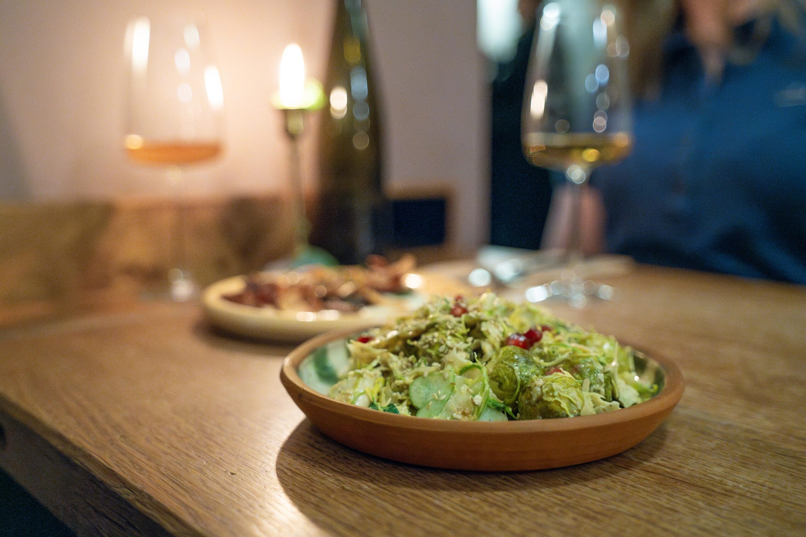 The sprouts dish is a delicious brush-off to winter, combining cauliflower, pomegranate seeds, sesame, mint and other bright, hardy ingredients. It’s a cleverly put-together vegan dish with flavours that you may not have tried before but work wonders together.