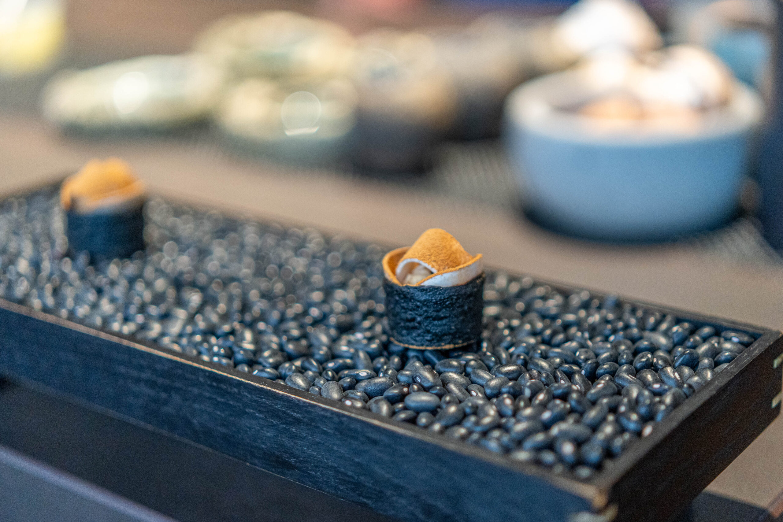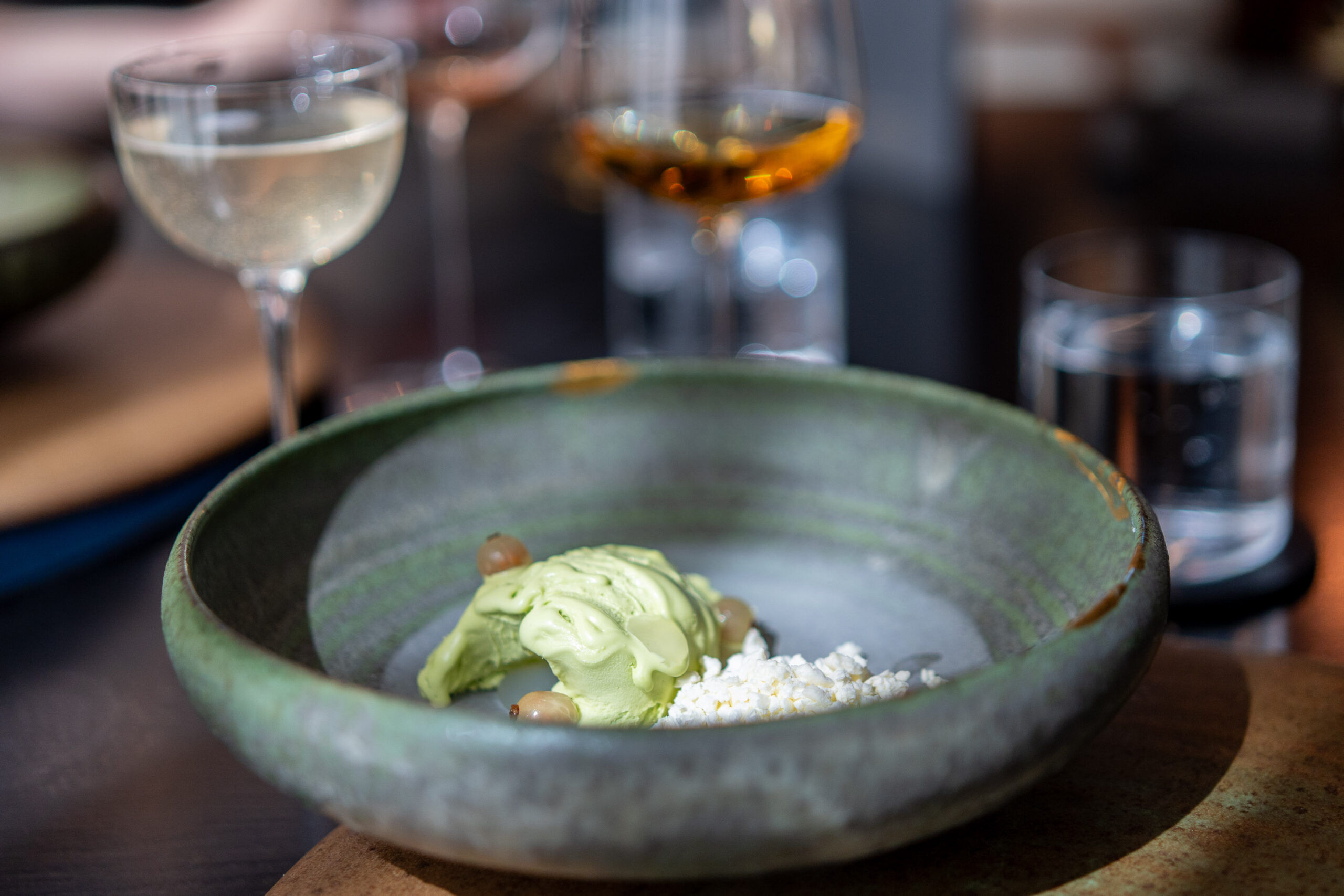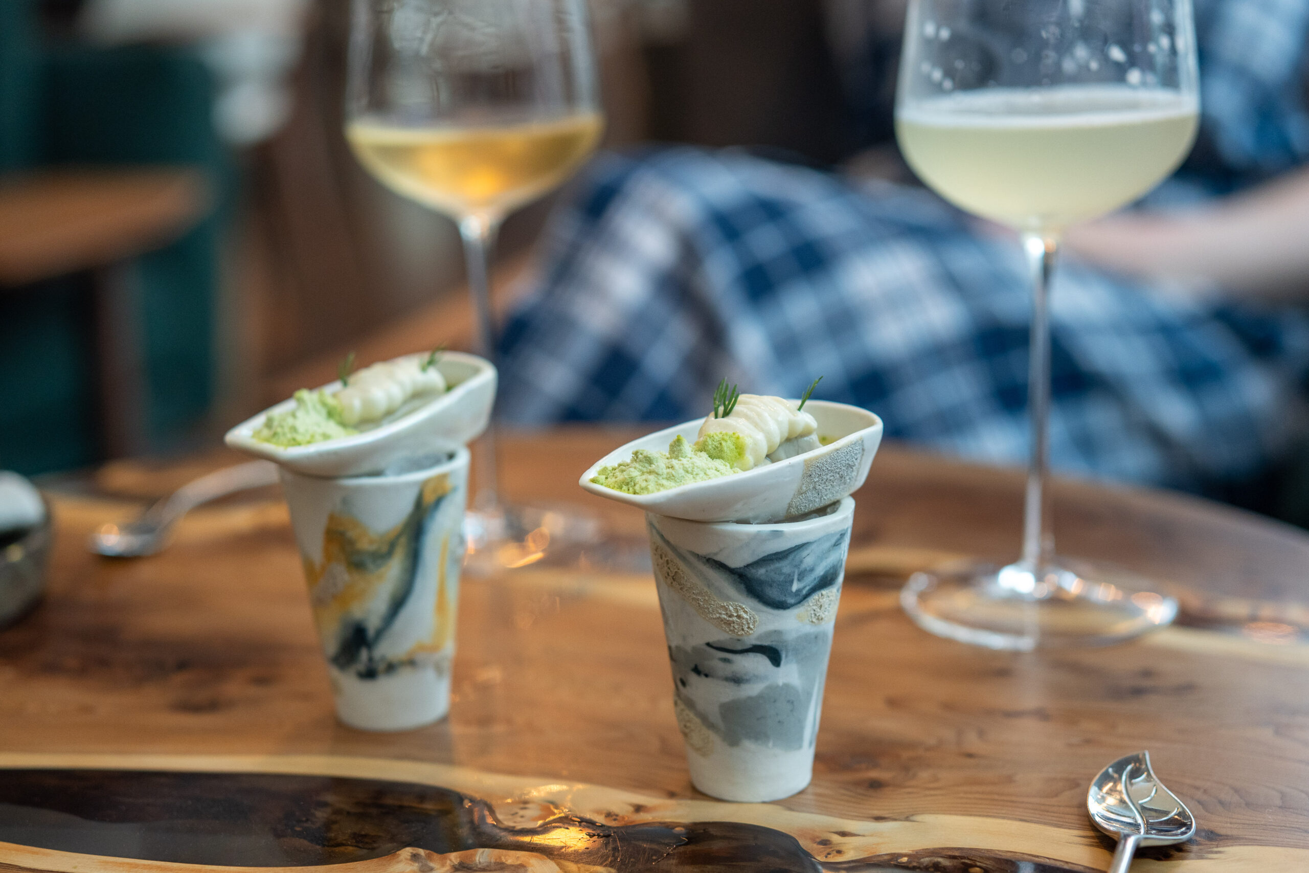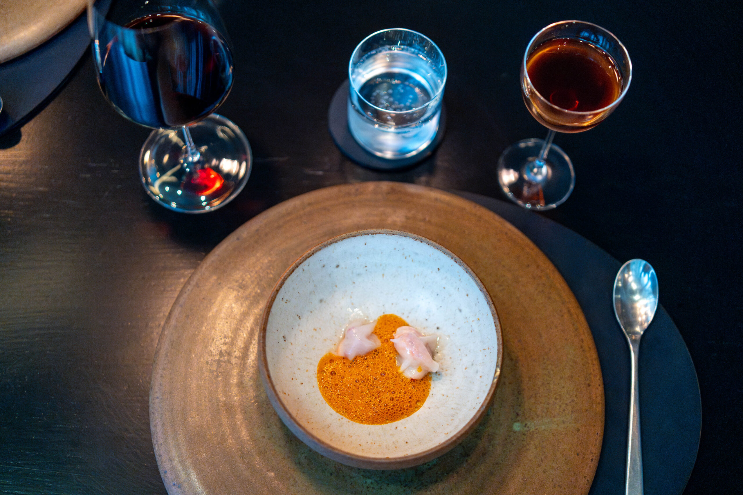 Nodding to the Japanese influence on the menu, we’re treated to things like sake so pure it looks (and feels) like milk, and a thick soup-like green tea, alongside some delicious and less-well-known wines. All elevate the paired dish, like some kind of olfactory sorcery.