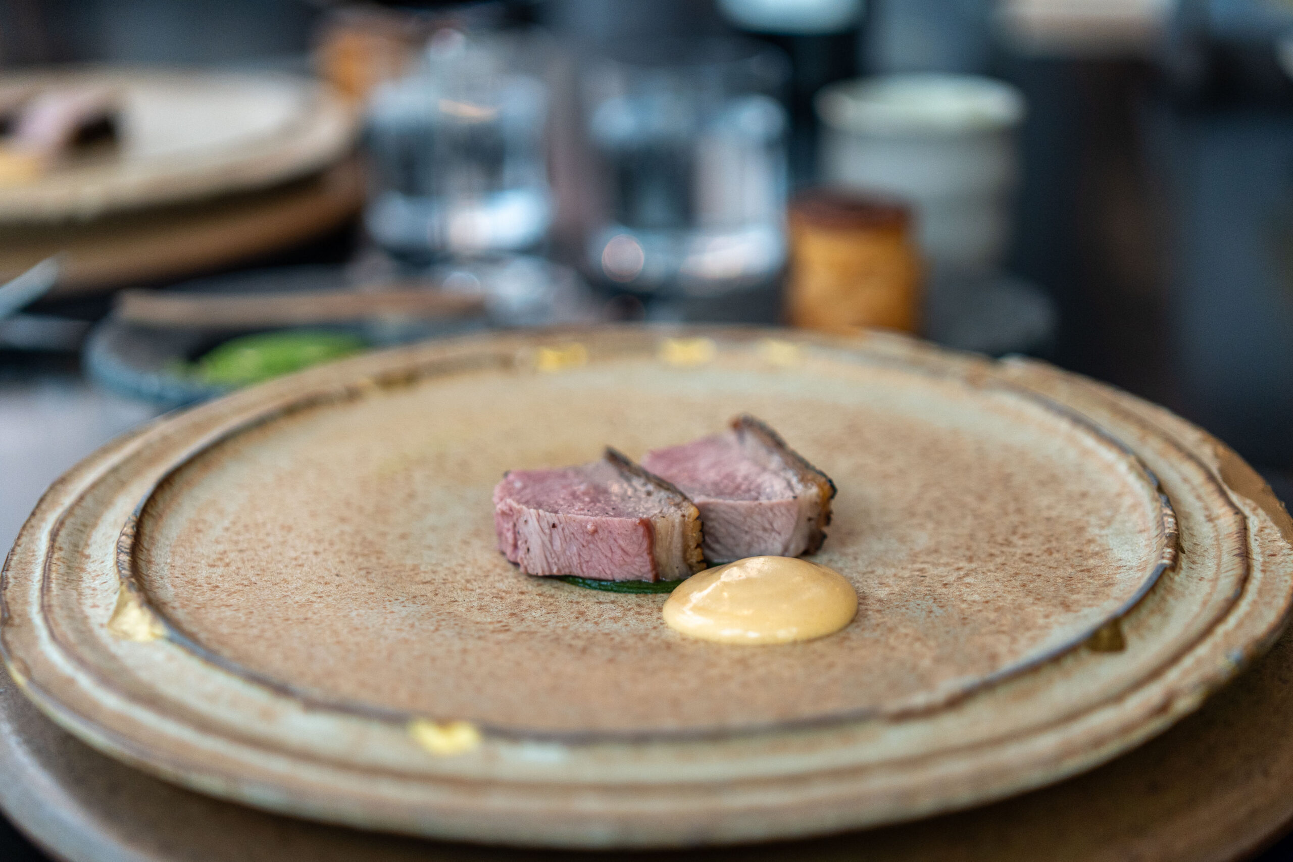 A procession of elaborate, diminutive courses reaches a crescendo with the sojae-cured hogget (AKA lamb that has celebrated its first birthday). It’s a demanding cut of meat to cook, gauged only by ‘vibes’. Once sliced, if it hasn’t been cooked correctly, goodnight Vienna. As such, this task is given to one lone, expert soldier, who must surely see hogget in his dreams. His ovine expertise is our gain – it’s perfect, with the optimum thick, crispy layer of salty fat.