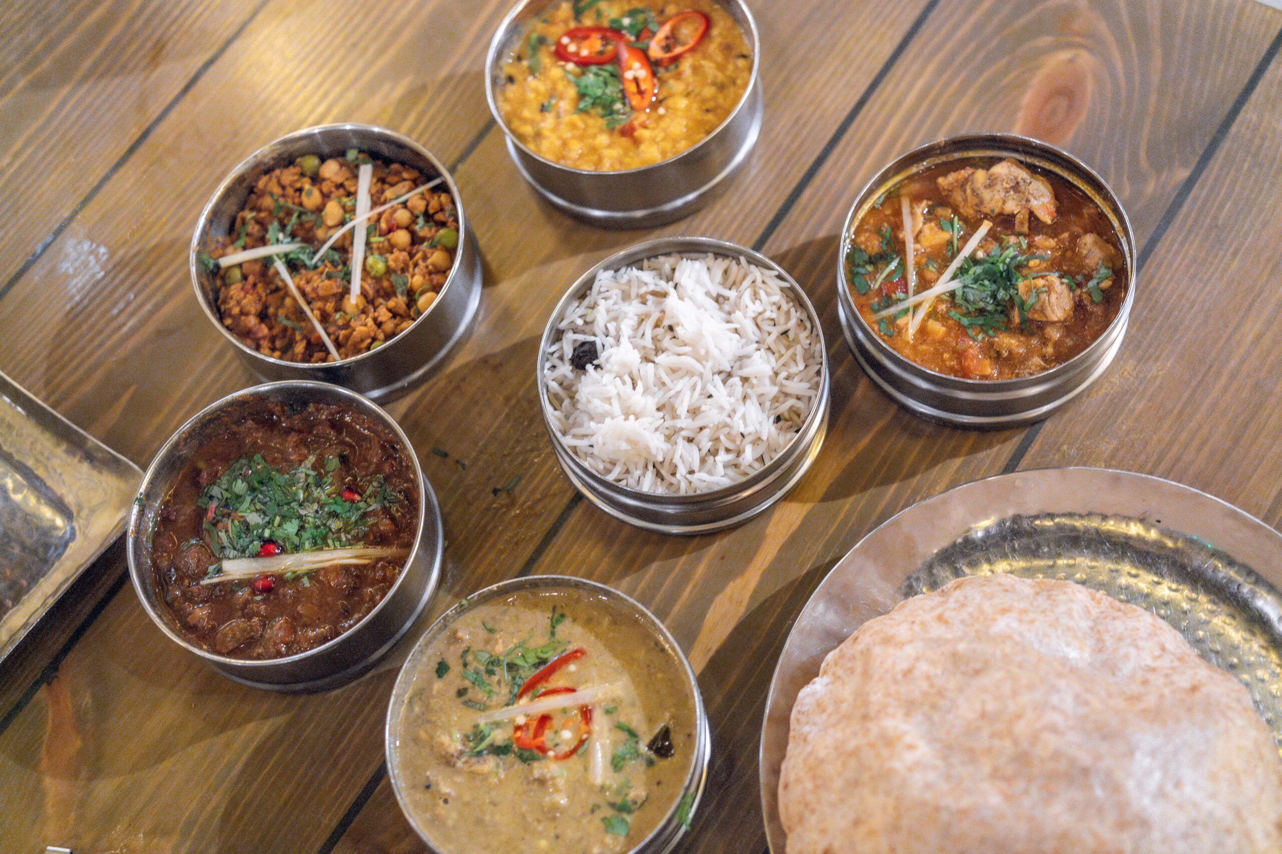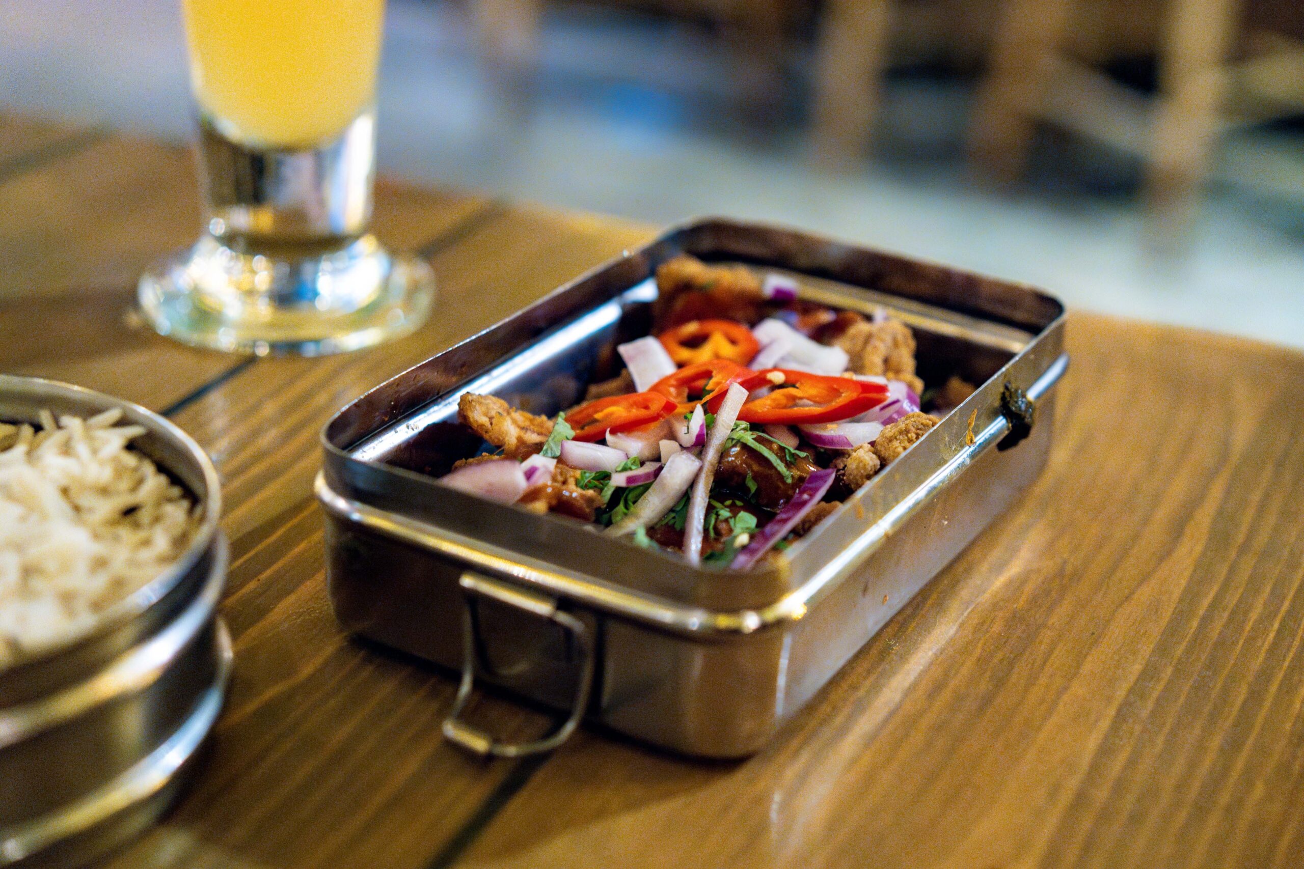 Then the tiffin boxes, which change according to the day’s cooking. There’s a great range of flavours and types, from hot and thick, to light and creamy, every one a winner. Standout options include the beautifully creamy coconut chicken, and the all-vegan keema chickpea. The latter uses soy and pulses to create flavours so rich and hearty, you won’t believe it’s not beef.