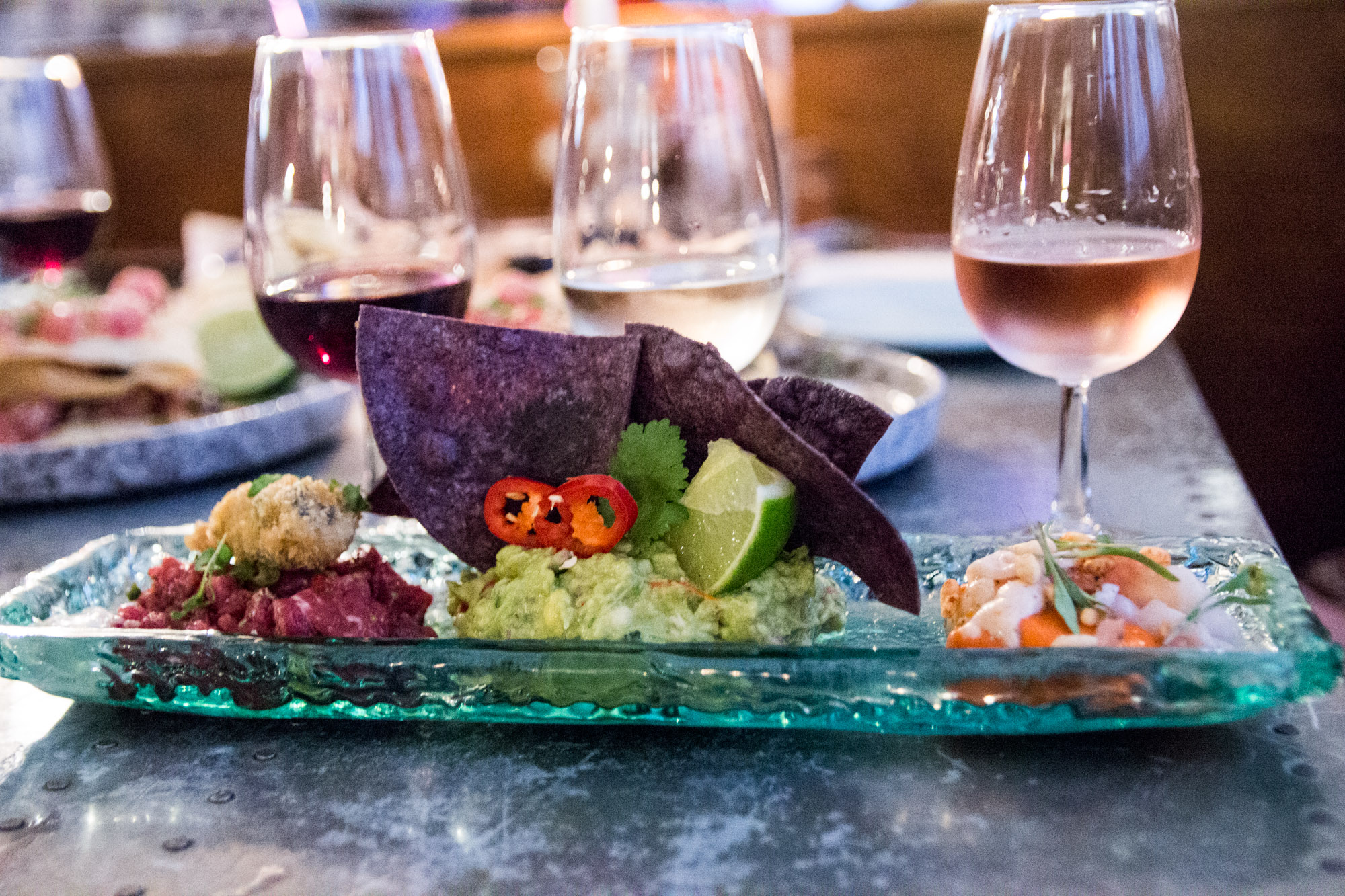 This new menu has been heavily revamped, now featuring a ceviche and raw section. The tuna pica is a pretty dish, all multiple crunchy layers, chunks of tuna, raisins and coconut shavings. But the ceviche sampler is the one to try. Designed for two, it’s a platter of dishes (beef, scallop and avocado) with expertly paired wines. (Fierce debate was had over the best but to my mind, the beef just shaved it.)