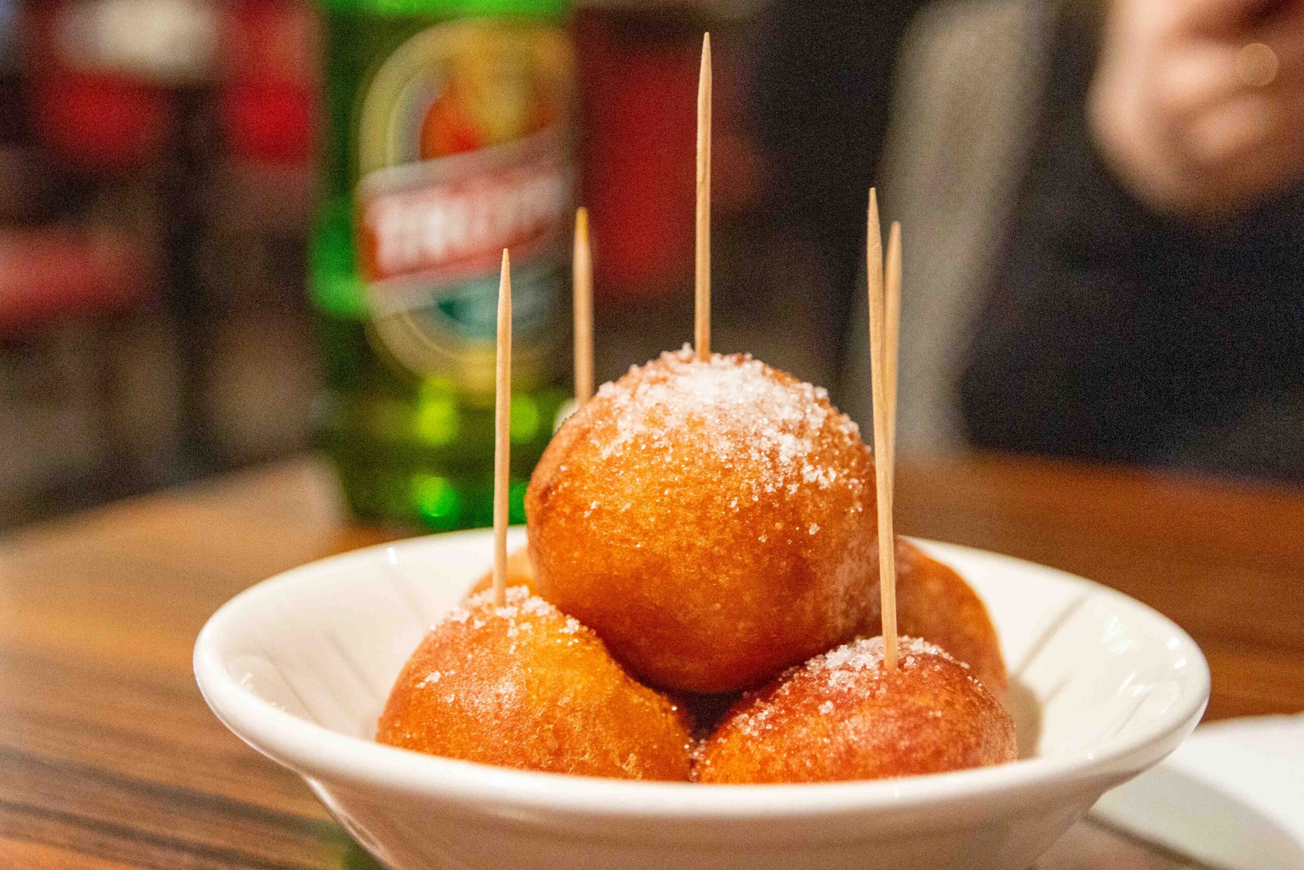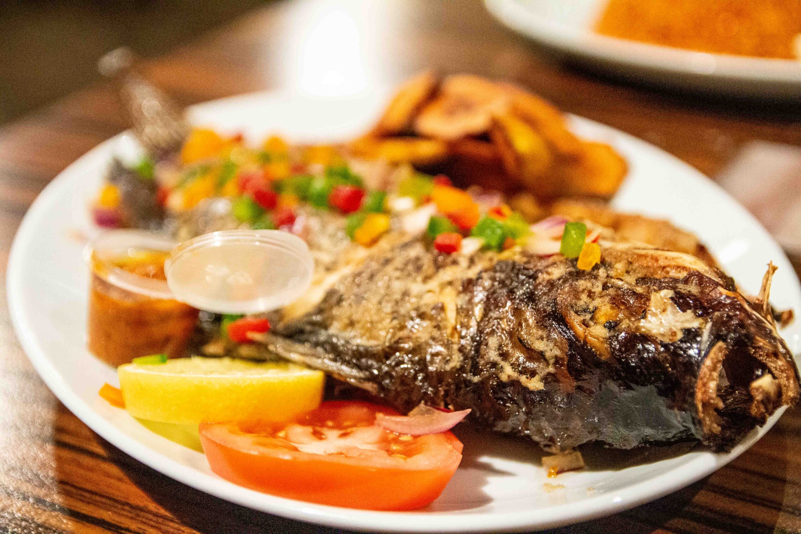 Highlights? The puff puffs are wonderful little pockets of sweet, airy dough, but the grilled tilapia is the standout dish from the Roots kitchen crew. The delicate white fish is expertly cooked, with a slight coal-grill aroma, and bedecked with colourful mini-cubes of chopped veg.