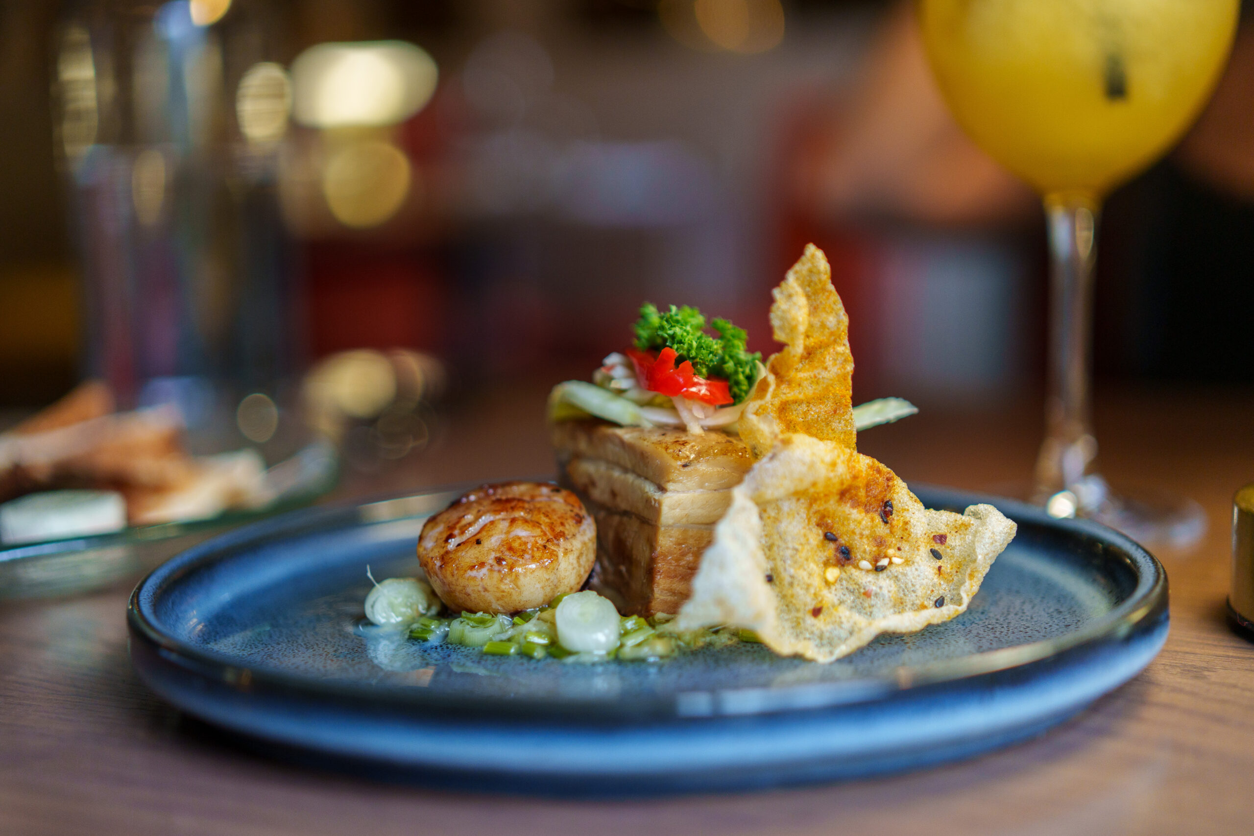 The cooking style is both familiar and fresh. The XO-glazed belly pork starter is a stellar item, rich and bawdy, offset by a pristine scallop, met with a dash of scallion-ginger oil.