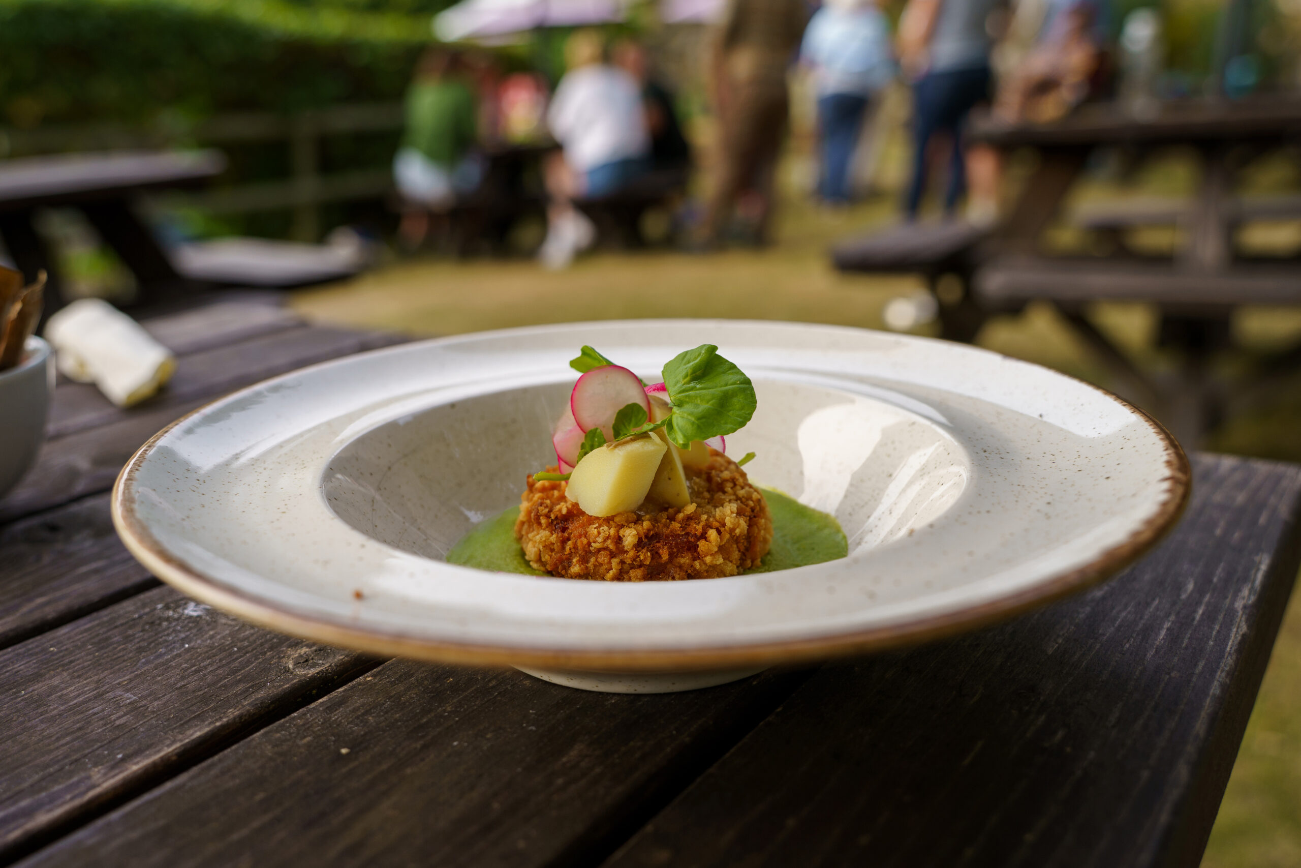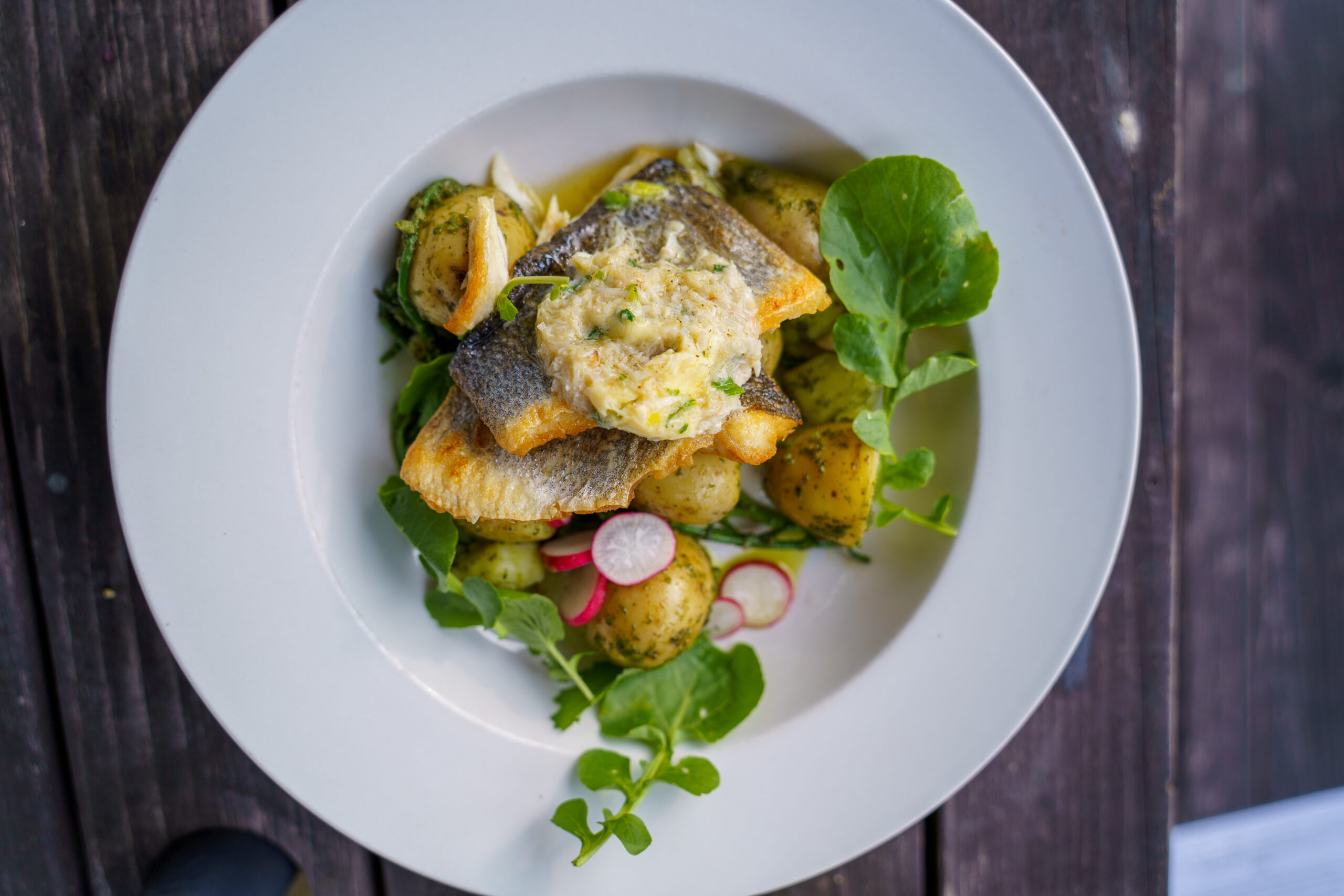 With a venue this pretty, and an atmosphere this amiable, they could serve up stewed socks and we’d be happy. Far from it. The food is as pretty as it is delicious, and they have an AA Rosette to prove it.