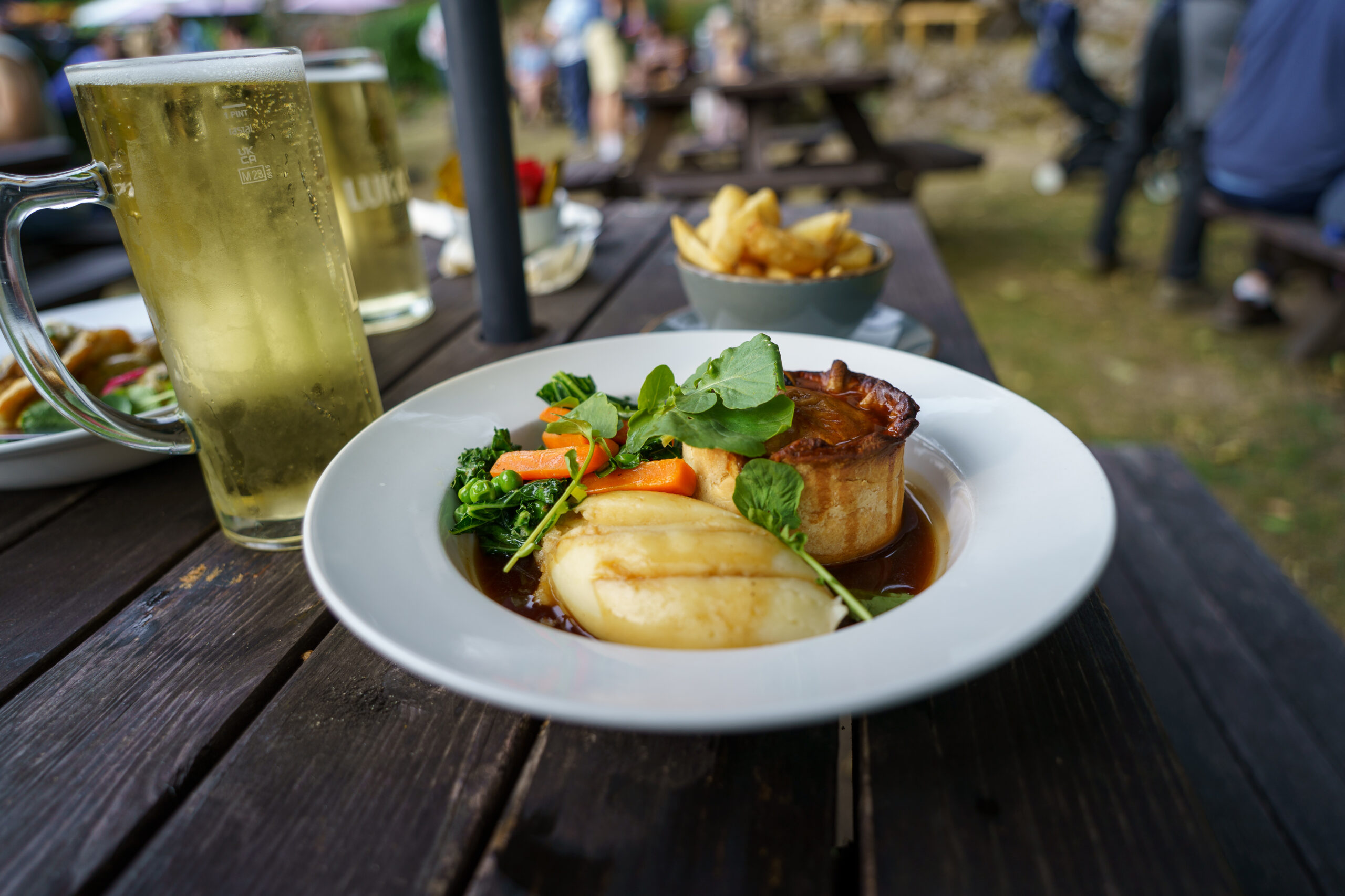 The steak pie is the kind of big meaty beast that will have been cooked the same for centuries: with a thick buttery crust, seasonal veg and huge chunks of slow-cooked beef in a rich, hazily ale-ish gravy.