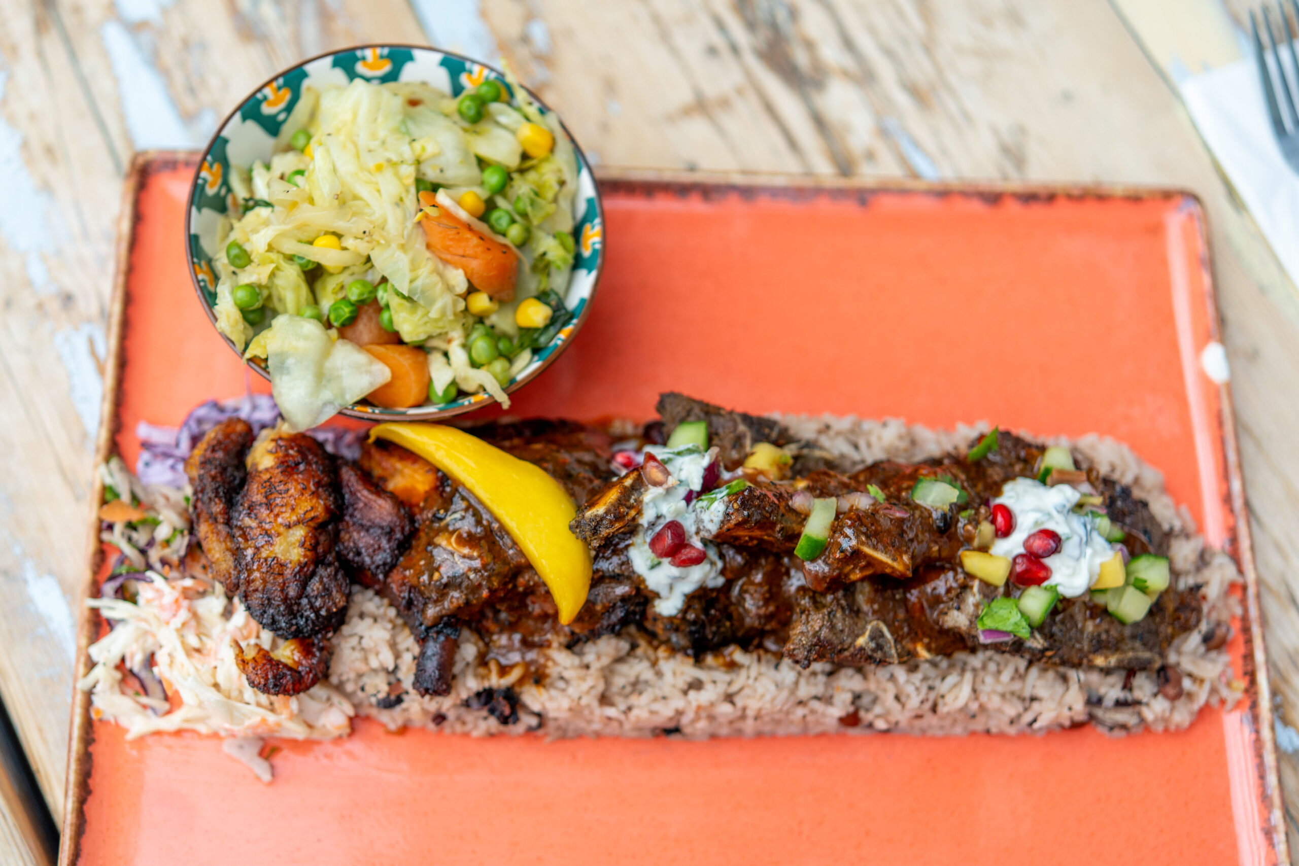 We opt for the Hench Drop Box, which includes curried goat and jerk chicken, and the Fish Box, which includes fried fish, ackee and saltfish. Both boxes include plantain, dumplings, coleslaw, coconut rice and peas. Each item is hot, spicy and delivers an addictive punch.