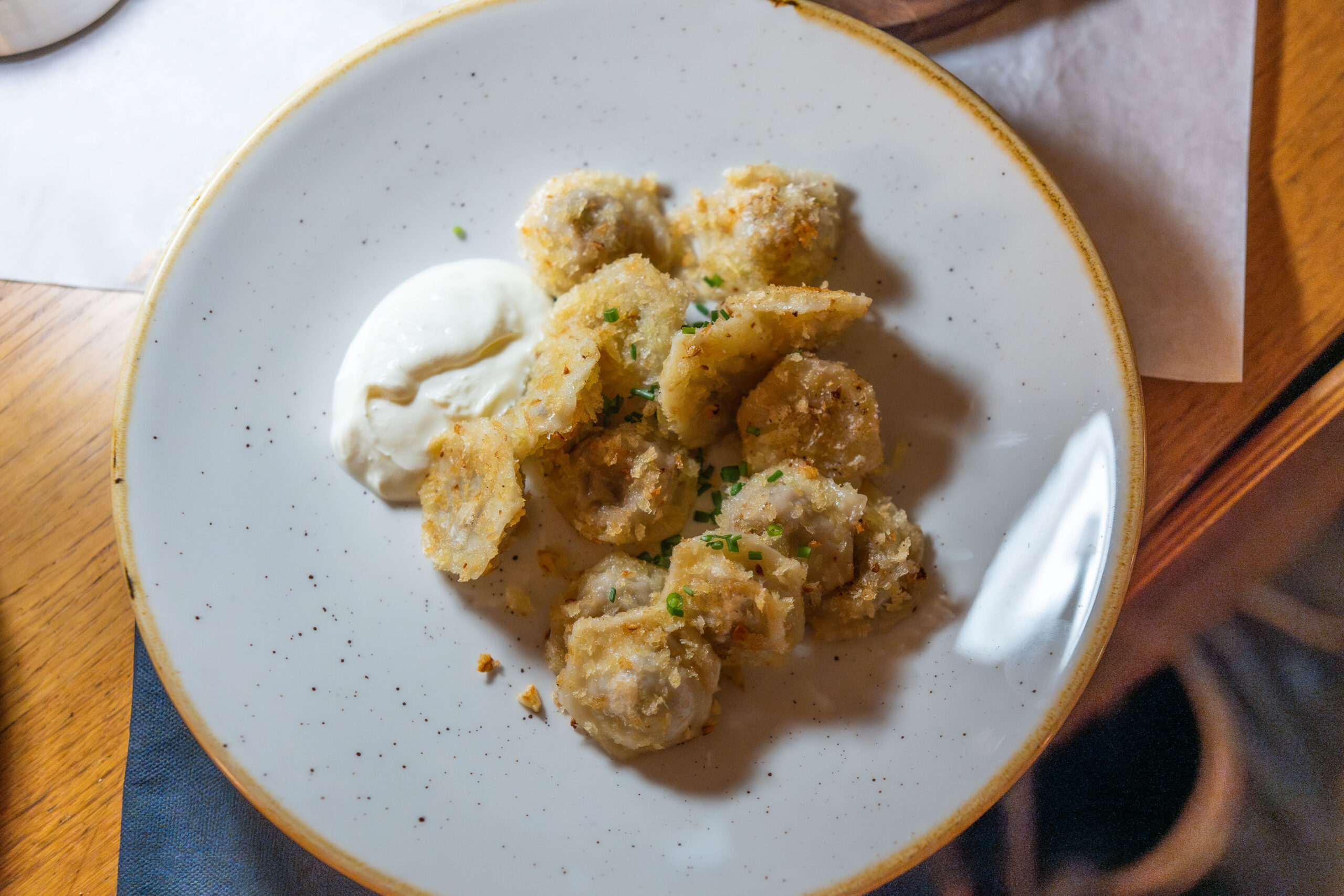 Sparrows is famed for its dumplings – just ask the Michelin Guide – so the pelmeni is a must. These are little East-European-style fried beauties (packed with nicely seasoned beef and pork in this case), covered in garlic breadcrumbs and with a hearty dollop of sour cream on the side. Wonderful.
