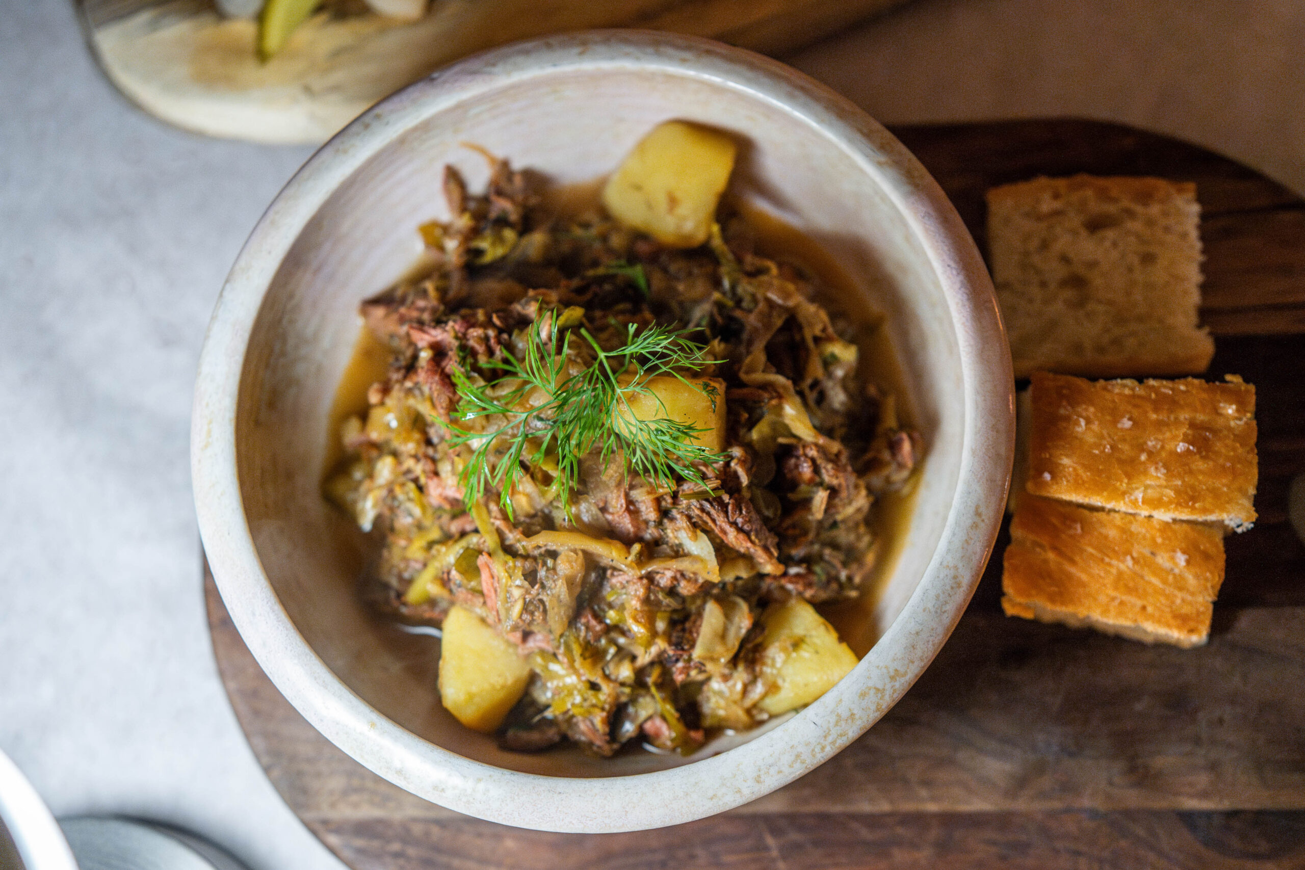 Then there’s the bigos, otherwise known as Polish hunters stew. Not as pretty but just as delicious, it’s a bowl of fiercely smokey meats (pork ribs and beef), plus tangy white cabbage, buttery soft new potatoes and a a dash of dill. Both dishes have a timeless feel – you can imagine some lucky 16th-century peasant tucking in.