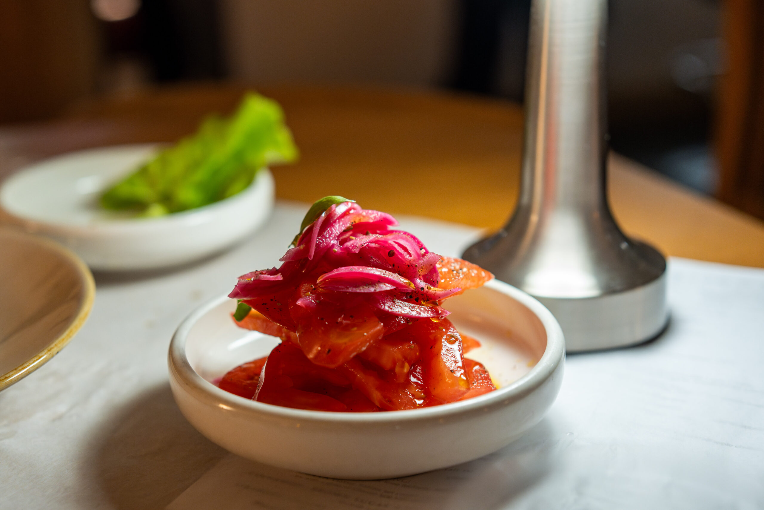 Before the mains, a special mention for the sides. The tomato salad is a towering pile of thick tomato and pickled red onion, steeped in apple vinegar. Similarly, the green salad is a few robust leaves, sprinkled with ‘Alpine herbs salt’. Yet somehow, both are more delicious than pretty much any other salad options in Manchester.